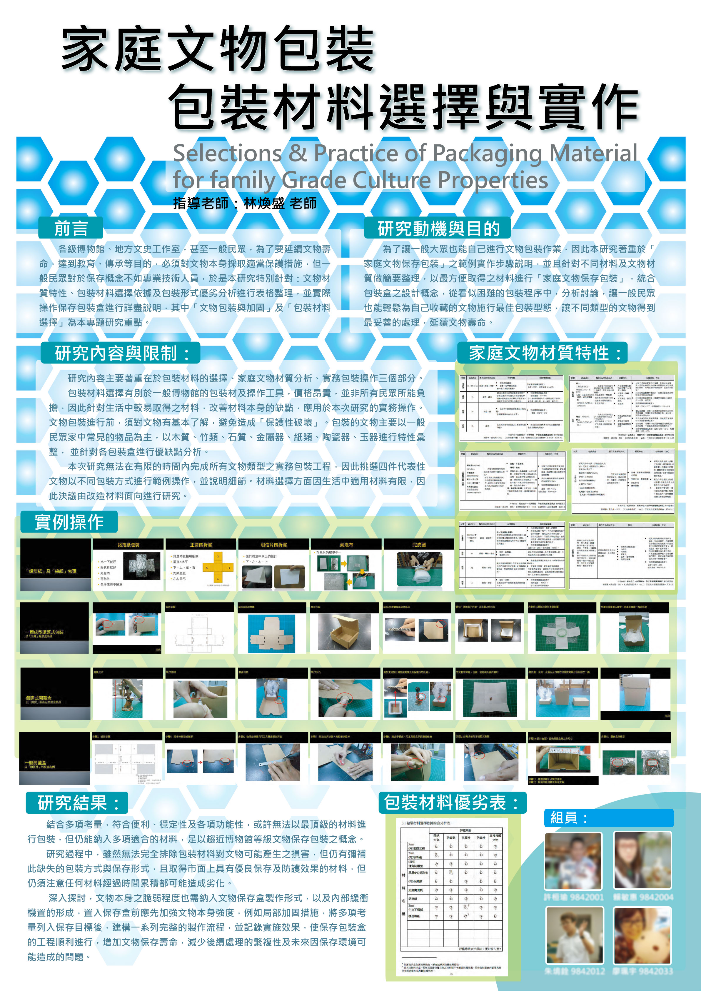 專題名稱:家庭文物包裝─ 包裝材料選擇與實作